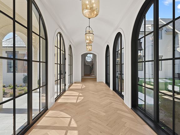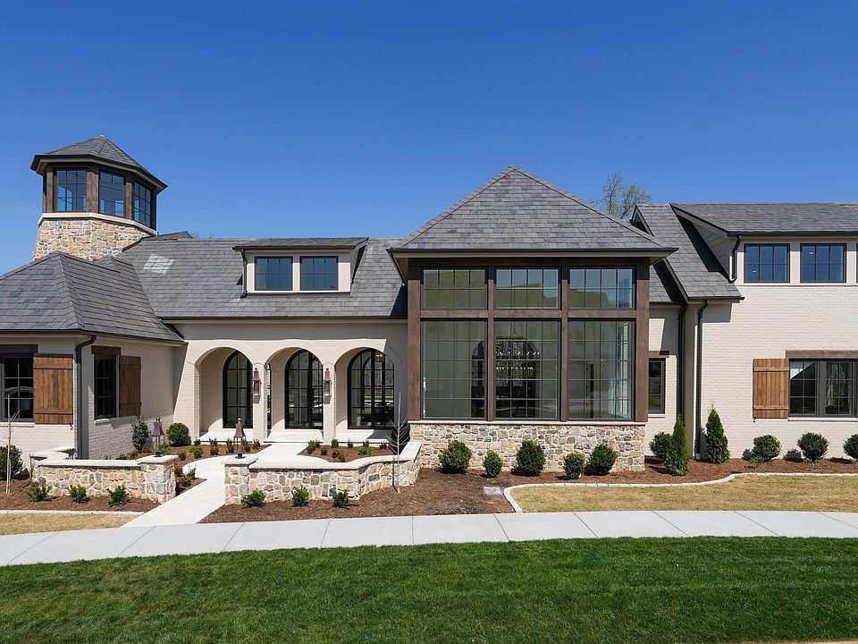 Situated on one of the most idyllic spots in the Hartness community, this captivating and magnificent custom retreat features a rich exterior of brick and stone mixing an element of coziness with luxury. A free-standing stone wall courtyard leads to a large front covered porch with dramatic arched windows offering an unobstructed view of the back courtyard. Large windows define the entrance and announce the stunning heart of the home. To the right, the gallery foyer leads to the formal dining room with high-volume ceilings and a tall wall of glass windows. A custom pantry/scullery with spacious cabinets, dishwasher, sink, and beverage refrigerator connects the dining room to the gourmet kitchen. Thoughtfully positioned to serve planned and informal events, the designer kitchen boasts quartz countertops, custom painted cabinets, an island work center and built-in seating area for informal meals. A raised-hearth stone fireplace provides an element of coziness for large events and small gatherings. The spectacular beamed cathedral ceiling in the living room and wall of windows allows views to the outdoor beauty of the wooded Nature Preserve which encompasses 180 acres. To the left of the galley foyer a spacious study easily converts to a bedroom suite with walk-in closet and private bath. The secluded homeowner’s wing includes a sitting area overlooking the Nature Preserve and private access to the courtyard pool through lovely French doors. Exceptional amenities in the master bath include his and her expansive walk-in closets, beautifully handcrafted double vanities, coffee station and floor-to-ceiling tile shower. The unique stone turret is accessed by a winding staircase which leads to a second-floor guest suite with private bath and large closet. A long hallway from the guest wing leads to an in-law/apartment which can be accessed either from the second floor or from a staircase in the 2 ½ car garage. This living space includes a spacious sleeping area and compact kitchen with stove, refrigerator, dishwasher plus a washer/dryer closet in the full bath. The finished space over the 2-car garage is wired to accommodate a golf simulator screen for the golf aficionado looking to improve their game or would make a great exercise area. The private bathroom features a steam shower for relaxing after a tough workout. One of the most intriguing elements of this home is the outdoor secluded courtyard with pool/hot tub and spacious covered terrace for outdoor entertaining. The custom design of this home includes the most up-to-date amenities including above-code levels of insulation with a full air seal in the wall and spray foam roof deck. The crawlspace is encapsulated to prevent future moisture issues. This is no doubt a “one of a kind” home within the Hartness community and Greenville.