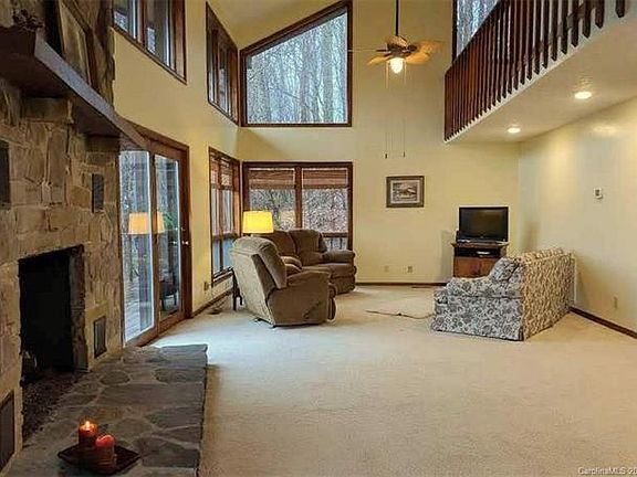 Admire the great view from this custom built home! It offers a spacious great room accented with a stone gas log fireplace, cathedral ceilings, french doors, & large windows allow in lots of natural light. Completing the main floor living area are a dining area, galley style kitchen, master bedroom, & bathroom. Upstairs are two bedrooms, a full bathroom, & a catwalk overlooking the great room. Breathe the fresh mountain air while you appreciate this tranquil setting from the covered porch or open deck; there's even rocking chairs waiting for you. Two car attached garage with laundry area is on the main level, & a basement offers storage and usable space. This gently lived-in home is offered as furnished (see list), and ready to move into. Less than 10 miles to Appalachian Trail/Max Patch Bald. Hiking, rafting, fishing, and simply relaxing are popular in this area. Seller is anxious to have a new owner appreciate all that's here!