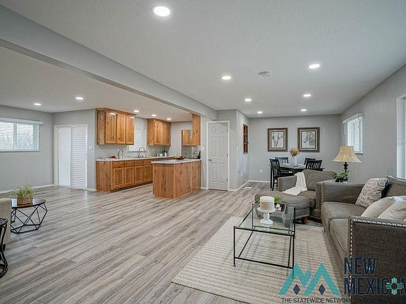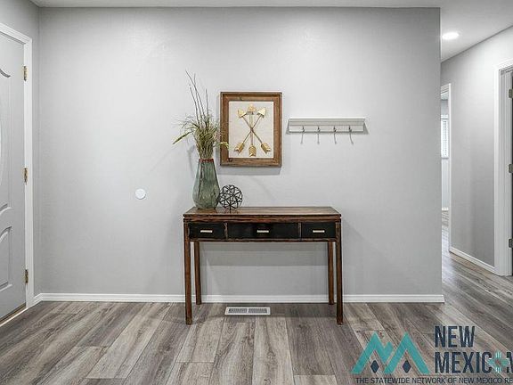 Moriarty, New Mexico home with a complete remodel from roof to basement and features a detached 20x33 shop with oil heater and power, 5 bay covered shed all on 3.28 acres. Room for horse operation or contractor base. This brick home has everything you would find in new construction - new metal roof, new windows and window coverings, complete new kitchen, new flooring, new paint, new LED recessed lights throughout, new bathrooms, new closets with custom storage shelves, new ceiling fans, central vacuum, new pellet stove, new HVAC central air, tankless hot water. Basement is 330 SF and could be used for 4th bedroom, office, or Game Room. City sewer plus a domestic well for the household, garden, orchard, and animals, Across the street from Moriarty Middle School. Albuquerque in less than an hour and Santa Fe in about hour.