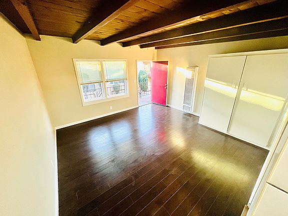 Listing Info UPPER SINGLE APARTMENT W/WOOD FLOORS AND REDWOOD BEAM CEILINGS, PARTIAL KITCHEN, UTILITIES INLCD. Some photos are of a similar unit. Amenities New Hardwood Floors laundry on site quiet neighborhood Sink microwave top stove Newly Remodeled Studio Apartment, Sorry No Dogs, Indoor Cat is ok. Beautiful Hardwood Floors, Red Wood Beam Ceiling, top stove (hot plate), good size kitchen area. This unit does not have full kitchen. Large shower with bathtub, white tiles.Everything recently redone. New Windows and window coverings. Utilities Included,gas,electric,water,trash. This unit has no stove, just a top stove . We do not provide refrigerators but if there is one in the unit you can use. Street parking, no restrictions. Laundry on site. Paid Utilities water & hot water & trash & gas & electricity & gardener