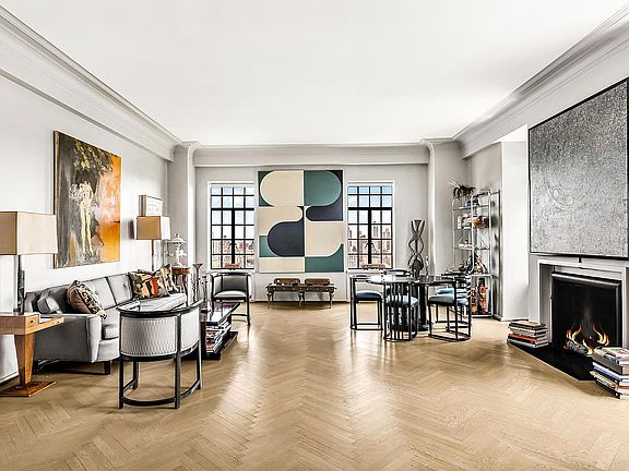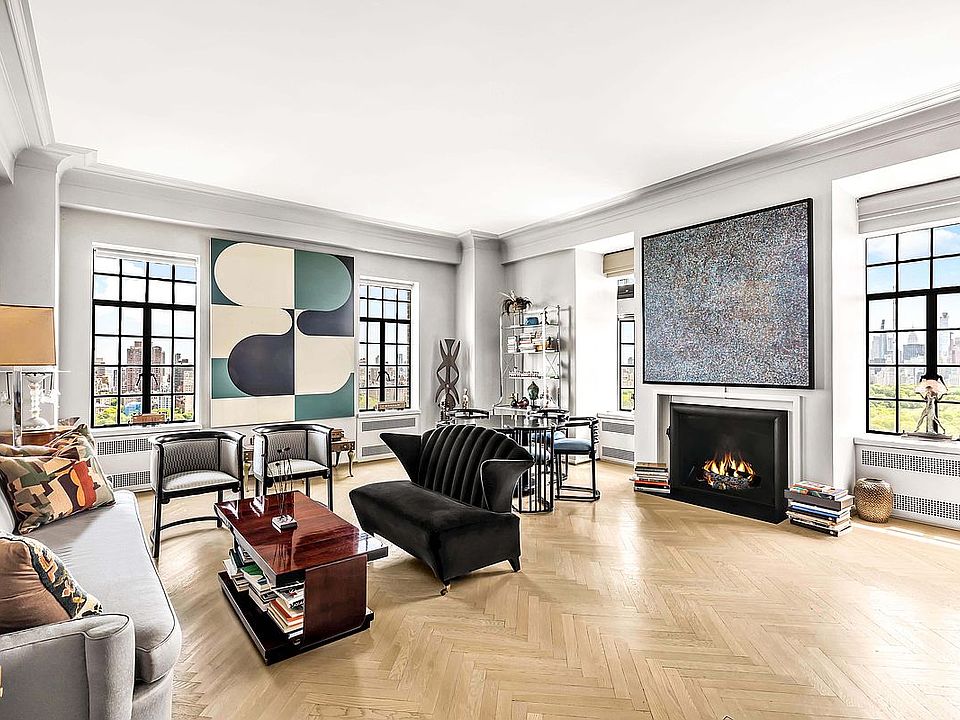 Your elevator lands onto a semi-private landing. Beyond the proper foyer is perched the spacious living room with non-working fireplace and double exposures to the South and East for brilliant Reservoir, Park and City views with all day sunlight. This enormous corner was the Living Room of the original full-floor apartment.