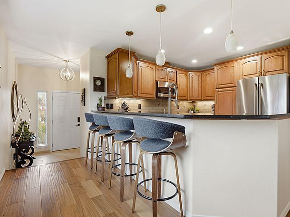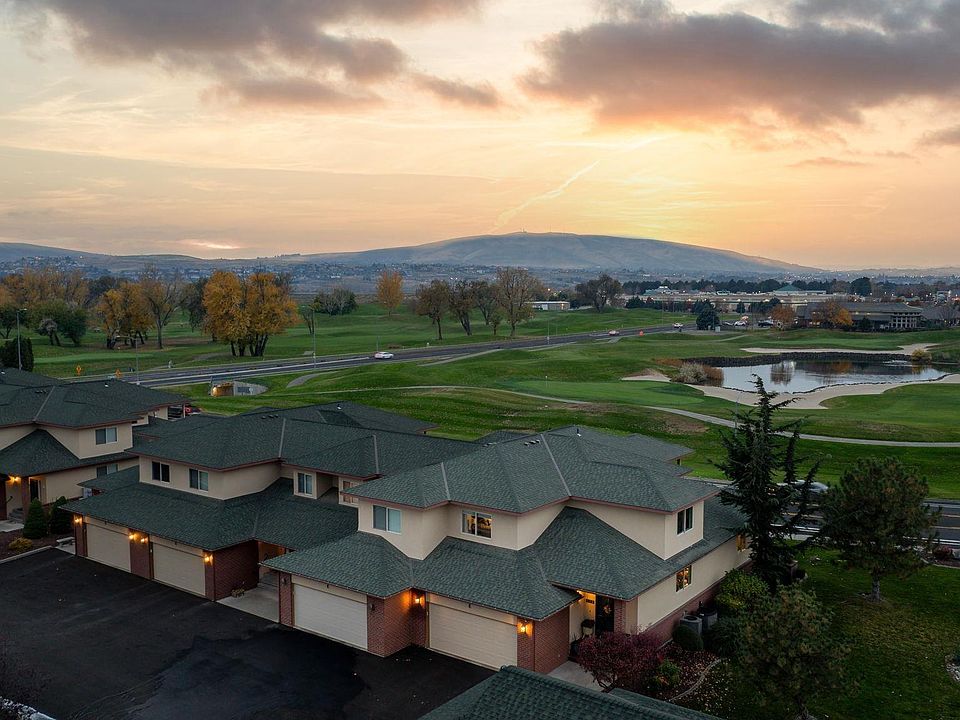 MLS# 288811 Experience elevated living in this remarkable corner-end condominium, perfectly positioned near the Columbia River, Columbia Point Golf Course, and a variety of highly rated restaurants—all within walking distance. Parks, scenic bike paths, the Columbia Point Trail, and the Richland Yacht Club sit just moments away, creating a lifestyle rooted in recreation, convenience, and effortless luxury.As you step inside, rich acacia engineered hardwood floors welcome you and guide your view toward the heart of the home. The living room offers a warm, inviting space to gather around the fireplace or step through the sliding door to the west-facing balcony, where sunsets become a nightly treat. Both the upper and main decks feature new Trex decking and remote-control window coverings for comfort and ease.The kitchen is beautifully appointed with black quartz countertops, designer textured subway tile layered with stone accents, real wood cabinetry, roll-out drawers, generous pantry space, and top-of-the-line appliances, including a natural gas stove—making it as functional as it is striking.The main-floor primary suite offers a private retreat featuring a dual-sink vanity, fully tiled walk-in shower, freestanding soaking tub, custom walk-in closet, and the added convenience of a bidet—complete with sliding door access to the covered deck for seamless indoor-outdoor living.Up the handcrafted wooden staircase, you’ll find a spacious bonus room with its own balcony, two large bedrooms (one offering a partial view of the Columbia River), and a generous guest bathroom with a dual-sink vanity and fully tiled walk-in shower. Ample linen closets and built-in storage throughout ensure incredible organization and convenience at every turn.This corner-end placement provides uncommon privacy, enhanced by an open green common area to the side that ensures no direct neighbor on one side of the home. Enjoy panoramic views of Badger and Candy Mountain, along with a desirable outlook toward the prestigious 18th hole of Columbia Point Golf Course.Additional features include a fully finished two-car garage, extensive storage options, and a utility sink in the half bath. This home combines premium finishes, thoughtful design, and an unbeatable location—offering a lifestyle that is both refined and refreshingly simple.