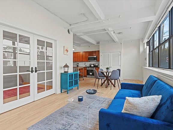 As you enter through your private entrance, you are greeted by the expansive, industrial layout, which allows for multiple design opportunities. The kitchen features stainless steel appliances, perfect for entertaining or everyday use. The updated bathroom has a fresh and modern look with new flooring and subway tiling.