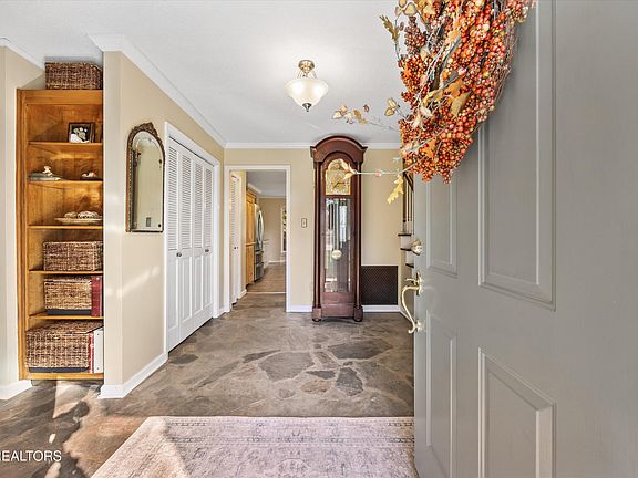 Welcome to this stately 2-story home in Farragut, perfectly situated just one mile from Farragut Primary School and two miles from the vibrant Turkey Creek shopping and entertainment area! This home exudes character, boasting a beautiful and unique slate floor in the foyer, built-in bookcases, and a HUGE dining room perfect for entertaining. Enjoy the convenience of a dedicated workshop and a private, level yard filled with mature trees, all nestled in a peaceful cul-de-sac. This spacious residence also features an office, four bedrooms, and abundant storage throughout. Well maintained, this home has had the kitchen, baths and windows updated! This is a charming home! Come see it today! Square footage is approximate. Buyer to verify all information.