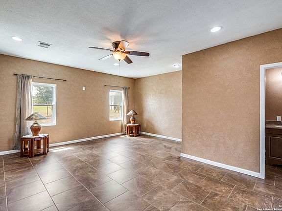 Rock fireplaceLarge covered patioBeautiful built-in storage