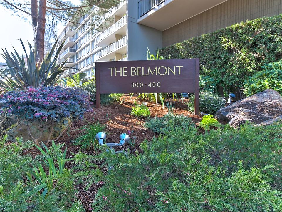 Located across the street from Davey Glen Park in one of the most desirable community The Belmont! This spacious unit boasting abundance of natural sunlight with a private deck can be conveniently accessed through the building's side door and includes one parking space in gated garage. Community amenities include pools, spas, billiards room, gym, sky terrace, and a play area. It is an excellent commuters' dream location to Silicon Valley and San Francisco with Caltrain less than 1 mile away and close to shops and restaurants.