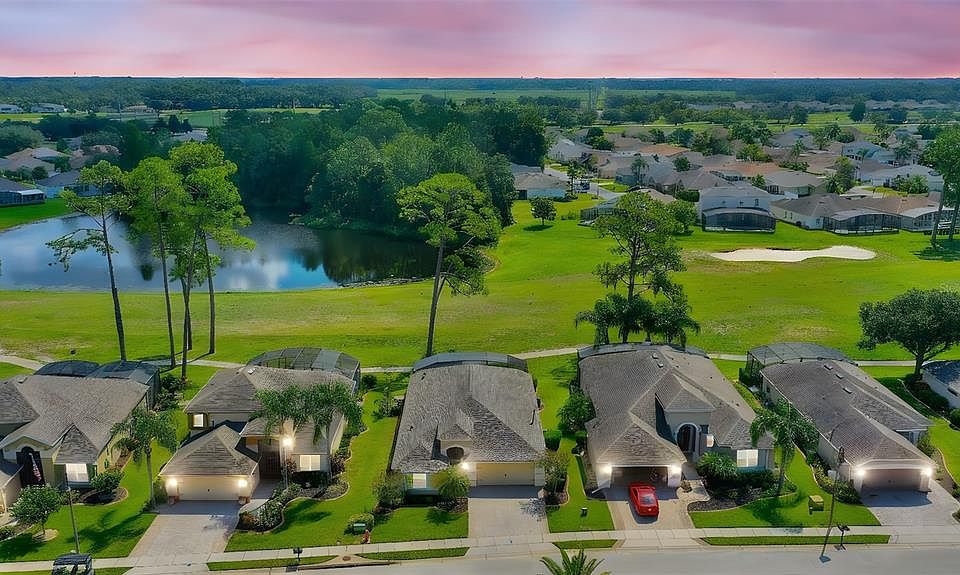 Welcome home to Del Webb Orlando! Truly exceptional 55+ resort-style living located in the gated golf community of Ridgewood Lakes. Convenient to shopping, hospital, restaurants, theme parks, airport and just a little over an hour to some of the world's most beautiful beaches! Just what you have been waiting for! PREMIUM LOT on GOLF COURSE with LAKE VIEW, POOL & SPA!! While away the hours sipping your beverage of choice on the part covered, part open screened lanai while overlooking your gorgeous pool and spa. Enjoy the golf course/lake view and the beautiful wildlife while taking in the serene sunrise. This 2 bedroom 2 bath plus office/den (easy conversion to 3rd bedroom) will impress with it's screened front porch and grand entry. Feel the space of the soaring ceilings and sliding glass pocket doors that open to the ample lanai. Gourmet kitchen with WOLF Gas range, granite countertops, large pantry and cozy dinette off the kitchen to savor your morning coffee while taking in the view! Rich wood cabinetry with rollouts. Open concept Gathering Room and Formal Dining Room. Spacious Primary Suite Respite featuring with walk in closet, glass slider to lanai, ensuite bath with garden tub, and separate shower. Split bedroom concept offering plenty of privacy for you and your guests. Interior laundry room with sink and large closet pantry,. Tons of upgrades including PLANTATION SHUTTERS, EXPANDED PAVER DRIVEWAY, GENERAC GENERATOR, NEW ROOF 2025, NEW AC 2023, NEWER CARPET! LAWN MAINTENANCE INCLUDED IN HOA FEE! Bringing a furry friend? You will love the dog park with separated areas for large and smaller pups, complete with a doggie water station! The resident owned Montecito Clubhouse is a state-of-the-art facility with 30,000 square feet of amenities. Complete with fitness center, indoor walking track, dance/aerobic studio, ballroom, craft rooms, resort-style outdoor pool, and even an indoor pool and hot tubs! Grab a bite to eat and your favorite beverage at La Tapenade Tavern where you can also enjoy live music, karaoke, trivia, and bingo Wednesday - Saturday. Looking for more activities? Try your hand at pickleball, shuffleboard, tennis, bocce ball, or basketball. How about a relaxing day playing golf at Ridgewood Lake's White Heron Golf Club? Take a stroll along the picturesque walking paths by the beautiful lakes or try your luck hooking a fish on the fishing dock. 24/7 GUARDED GATE ACCESS. BONUS - This community has NO CDD! You're just minutes away from everything you need. Call today to schedule your private showing!