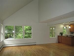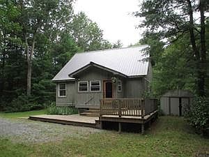 Quiet, wooded setting in Schuylerville Schools. Three bedroom, two full bath home which sits off the road on .69 acres directly across from county forest. Two tiered front deck leads to 11' x 7.5' large encl. entry porch. Wood flrs t/o. Cape style w/a contemporary & open flow. Bright home w/ many windows & a vaulted ceiling. Rough-cut thick lumber wood siding, metal roof. Semi-finished basement w/bilco door exit. This is a unique home, worth a look!! Taxes do not reflect STAR. Easy access to I-87.