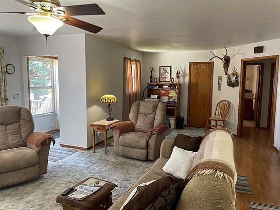 Small Town living at it's best! This cute home in Tyndall is situated on a half acre at the end of a street, surrounded by mature pines that provide privacy and beauty!! The main level includes 2 bedrooms both w/double closets, a full bath, open living room w/large window overlooking the front yard, deck & a picturesque maple tree. An eat-in kitchen is open from the living room that has a cozy charm & includes a window above the sink to look outside as you finish supper dishes. In the basement you will find tons of potential & storage, a finished 3/4 bath, washer/dryer hookups and utilities. Outside, you will find a 2 stall, attached garage, a one stall detached garage, a small garden area, a shed, an excellent view of the baseball field, a clothesline hung in the backyard & perennials throughout! Schedule your showing today!!