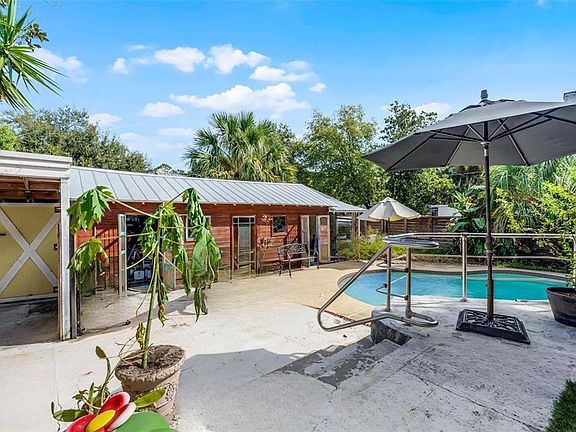 Welcome to 300 E. 20th Street—a one-of-a-kind Sanford gem that delivers more than meets the eye. Here you’ll find a charming 2-bedroom, 1-bath cottage with a large detached garage with a 2-car carport, and your very own PRIVATE POOL—all tucked along Palmetto Avenue in Historic Downtown Sanford. Just a mile from the lively shops, breweries, restaurants, and festivals, this home places you right at the heart of it all. Step inside and fall in love with the details: original wood floors, a cozy fireplace, a whimsical primary bath with a walk-in shower, a generous walk-in closet, and a kitchen that makes a statement with live-edge wood countertops and natural gas cooking. Big windows pour in Florida sunshine, while the second bedroom offers a flexible layout perfect for guests, an office, or creative space. This unique and wonderful home even has a secret up its sleeve - "secret" stairs to a full walk-up attic. Whether you use it for ample storage or finish it into bonus living space, the possibilities are endless. Add in the sparkling pool and you’ve got a home that’s equal parts fun, functional, and fabulously Sanford!