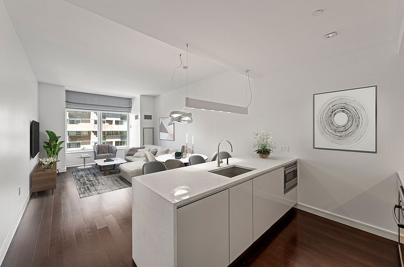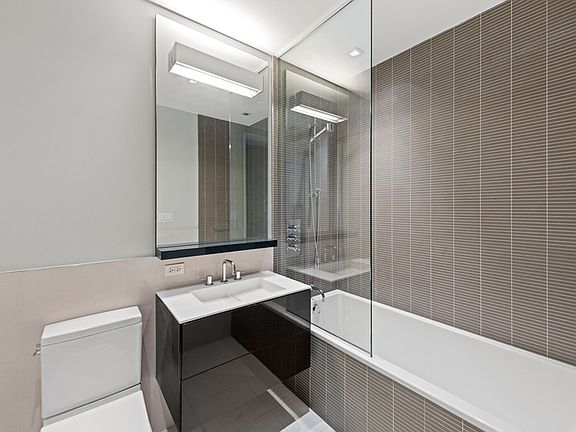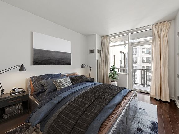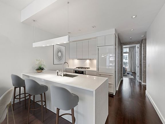 Boasting pristine finishes and an abundance of natural light, this 2-bedroom, 2-bathroom condo is a stunning portrait of contemporary city living. Features of this 1,168 sq. ft. home include gorgeous wide plank Merbau floors, airy 10-ft ceilings, huge windows with double exposure, central heating and cooling, a private balcony, and a convenient in-unit washer/dryer. Beyond a tasteful entryway adorned with a coat closet and full bathroom, the home flows into a 30-ft long, open-concept living room, dining room, and kitchen. The all-white kitchen is equipped with a massive eat-in peninsula, sleek countertops, a matching backsplash, and a suite of high-end, fully-integrated appliances from Bosch and Sub-Zero. The master bedroom possesses a custom walk-in closet, access to the balcony, and an immaculate en-suite bathroom with a large walk-in shower, a floating vanity, and Gruppo Italia finishes. The second bedroom has a large reach-in closet and easy access to the home's second full bathroom. Tempo is a full-service condominium situated just three blocks from Gramercy Park. Amenities include a full-time doorman, 24-hour concierge service, a state-of-the-art fitness center, a spa, a private lounge, a furnished rooftop deck with grilling stations, and a courtyard garden with an outdoor screening space. The building is just steps from restaurants, cafes, bars, and shops, and is about ten minutes from both Union Square and Madison Square Parks. Nearby subway lines include the 6/R/W. Pets are welcome. There is a 421-A Tax Abatement in-place until May 31, 2022.