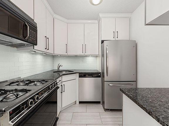 This oversized residence features a spacious living and dining area with wide eastern exposures and floor-to-ceiling glass that floods the home with natural light. The open-concept kitchen is outfitted with granite countertops, stainless steel appliances, and sleek cabinetry-ideal for everyday cooking or entertaining.