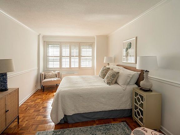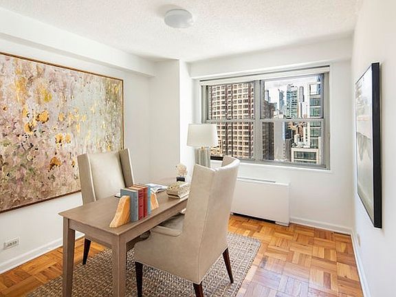 A welcoming foyer opens to a large living and dining area. Through a sliding glass door access the private balcony facing south with views east to the East River and beyond. The windowed kitchen provides ample storage and prep space. The west facing large primary bedroom includes an en-suite bath, while the large sunny second bedroom faces south. Bedroom 3 can easily serve as a home office or bedroom. 20K on a high floor has tremendous views south and west and is pin drop quiet. There is an abundance of closets throughout. Your vision for improvements is welcomed. The monthly capital assessment of $897.94 is included here in the maintenance.