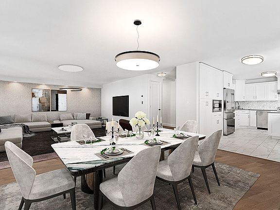 The newly renovated kitchen is contemporary and streamlined, outfitted with modern amenities and casual seating. The primary bedroom includes a custom walk-in closet and an ensuite bathroom, while the generously sized guest bedroom has a bathroom conveniently located in the hall. A third bedroom can easily be reinstated by converting part of the great room back to its original design. For your convenience, laundry facilities are located on the same floor, just outside the foyer. Additional upgrades include an elevation of the electrical service in 2022, ensuring highest standards of living. Photography Has Been Virtually Enhanced.