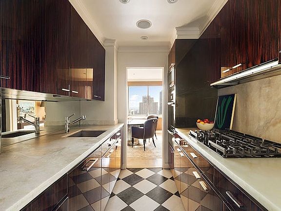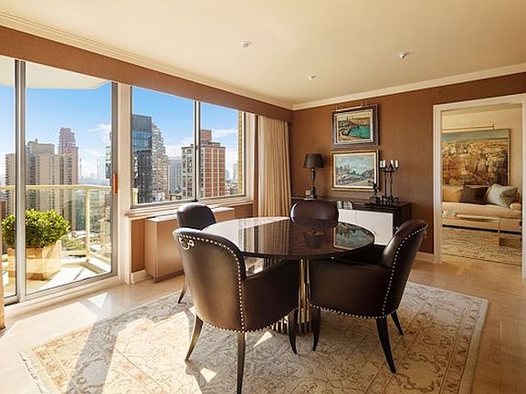 Residence #30AB is impeccably designed. Modern, yet classic, the spacious three bedroom, three and half bathroom home is enhanced with two private balconies and limitless panoramic city views in all directions. With 2,000sf of sun-filled living area, every room has been thoughtfully designed with luxurious finishes: the dramatic entrance foyer with its lacquered walls and tea-paper ceilings, powder room with French Limestone and Nero Marquina tiled walls and floor, dual primary bathrooms both clad in Arabescato marble and mirror, guest bathroom in Calacatta Gold marble slab, and bleached and glazed solid White Oak parquet floors throughout. The functional galley kitchen features top-of-the line appliances, Onyx countertops and backsplash, Macassar Ebony cabinetry, and two pantry storage closets. The Sonos sound system, Bosch washer and dryer, dry bar with wine cooler, numerous outfitted walk-in closets, and steam shower add to the exemplary luxury design. This unique offering is sophisticated, yet comfortable: neat, trim, tidy, and move-in ready.
