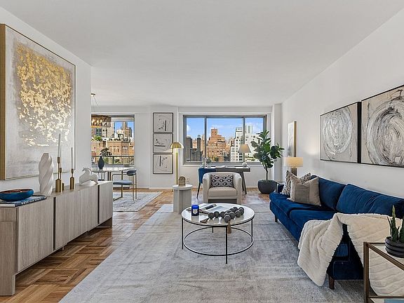 This bright and airy home faces West and South, features sprawling proportions with a spacious living area, dedicated dining space (which can be converted to a 2nd bedroom/ home office), bonus office nook and 1.5 bathrooms. There are newly refinished Parquet wood floors and open exposures that flood the apartment with natural light.