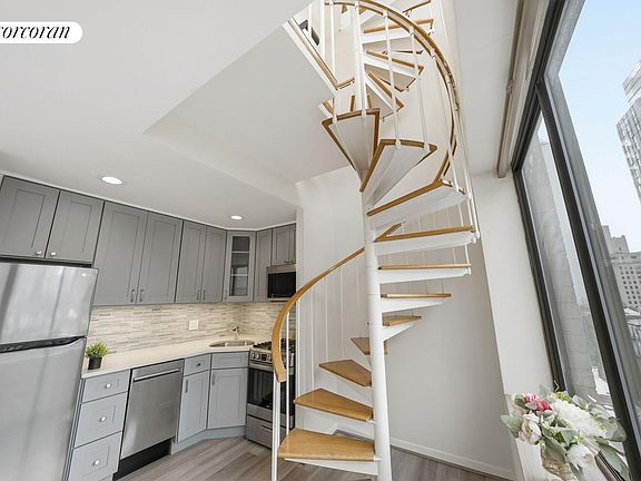 Spiral staircaseBright bedroomOpen-concept living spaceHigh ceilingsSoaring ceilingsStainless steel appliancesJaw-dropping city views