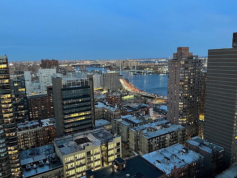 Fabulous high floor corner two bedroom with spectacular river and city views! Open living /dining room with two walls of oversized windows and views of the East River. Offering North, East, and South Exposures, Amazing combination of Light and Views. A Great layout, Ideal for entertaining!