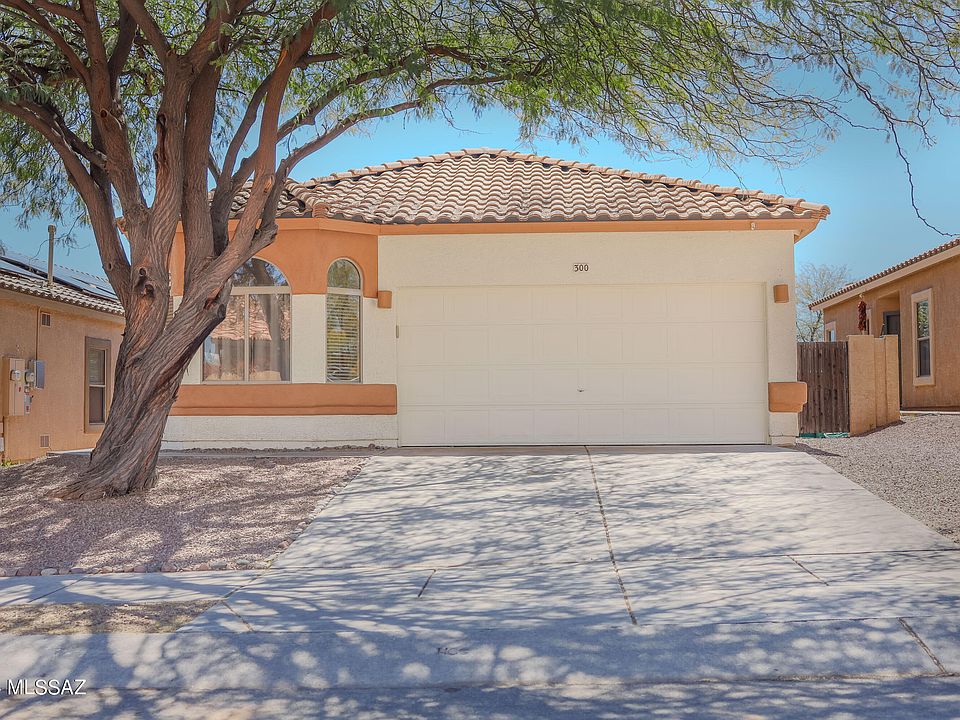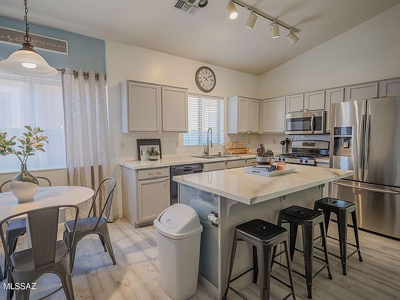 This charming home in Rancho Sahuarita boasts high ceilings and an open-concept design, making it inviting and spacious. Its kitchen is equipped with stainless steel appliances, updated cabinets, and ample storage, while the master suite features serene backyard views and a well-appointed bathroom. Outside, enjoy a covered patio and landscaped area with a gazebo, perfect for relaxation. With three additional bedrooms this move-in ready home is perfect for a new family looking for comfort and style.