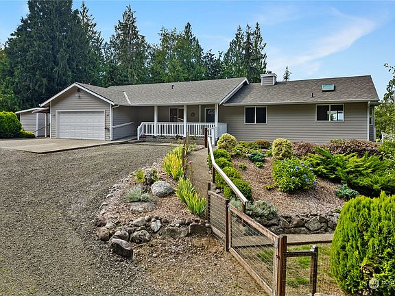 Private gated entrance welcomes you to this custom-built rambler with shop, perched on 5 acres with Olympic Mountain views - including saltwater access! Spacious 1828 sf 3 bedroom, 1.75 bath home features vaulted ceilings, beautiful natural light, bamboo flooring, new stainless kitchen appliances, new bedroom carpet, new interior paint and new roof! Wide walking path gives access to entire perimeter of property. Deep well and transformer on property provide possibility of an ADU addition. Paved road, close to town and schools, bus stop at end of road, no HOA Fees! Shop has 220!