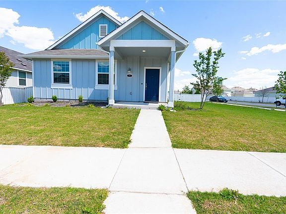 This inviting corner-lot single-story home in the newly developed Casetta Ranch offers 3 bedrooms and 2 bathrooms with a bright, open floor plan. Tile flooring flows through the common areas while plush carpeting creates a cozy feel in the bedrooms. The kitchen features granite countertops, a stylish subway tile backsplash, a pantry, and comes equipped with a refrigerator. A washer and dryer are also included for added convenience. The private Primary Suite, located at the rear of the home, provides a peaceful retreat. Extra storage can be found in the spacious utility closet and built-in shelving inside the detached 2-car garage. The large fenced backyard is perfect for relaxing, gardening, or hosting gatherings, with plenty of room for pets to play. Casetta Ranch is ideally situated just one mile east of I-35, offering a quick commute to Austin and easy access to shopping, dining, Lake Kyle Park, and downtown Kyle. Pet-friendly!