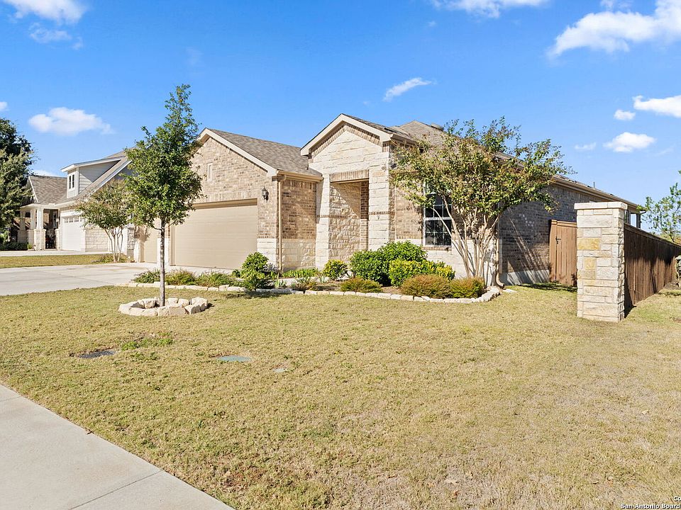 **CORNER LOT**Immaculate, nearly new home in highly desirable Gregg Ranch-Marble Falls' premier master-planned community! Lightly lived in and move-in ready, this single-story gem features an open, light-filled layout with a stylish kitchen boasting quartz countertops, stainless appliances, oversized island, walk-in pantry, and designer herringbone backsplash. The private primary suite offers a spa-style bathroom with a large walk-in shower and an expansive walk-in closet.Additional highlights include a 3-car garage with extra shelving, 4-sided brick and stone exterior, covered patio, circular sand safety area for a fire pit, sprinkler system, fenced yard, and all-electric utilities. Enjoy the best of Hill Country living with resort-style amenities-community pool, clubhouse, walking & biking trails, dog park, bocce & horseshoe courts, playgrounds, and wide-open greenbelts. Conveniently located near Lake Marble Falls, local dining, and easy access to Austin and SH 71. Experience modern comfort, thoughtful design, and timeless Texas charm at 300 Fiddleneck Rd.