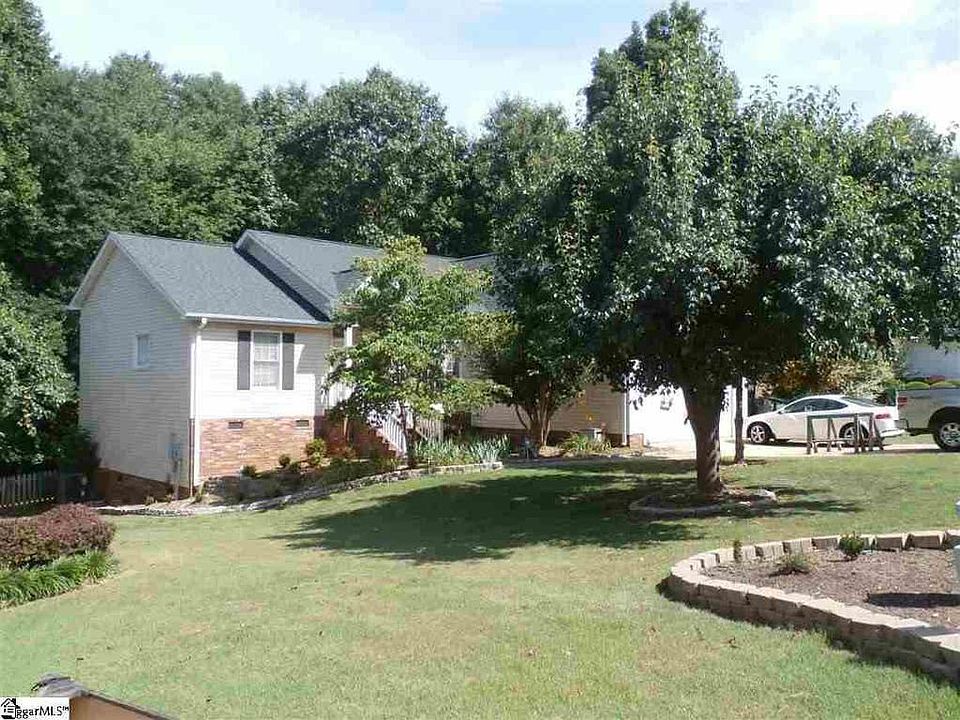 This spacious 4 bedroom, 2 bath home located in Planter's Row has something for the entire family! The beautiful foyer entry, formal dining room and family room all feature hardwood floors and a great open floor plan. The kitchen opens up to the living room and breakfast area with ample counter space and stainless steel appliances. The spacious master bedroom has hardwood floors and lots of natural light. The master bathroom has built in shelving for storage and a double vanity. Two additional bedrooms are located on the main floor. The large forth bedroom, located upstairs, would make a great playroom or home office! The charming porch, located off the kitchen, opens to the 13x19 deck that overlooks the beautiful backyard and your own private stream! The crawl space offers plenty of additional storage and there is even a small workshop area in the garage. Planter's Row is a great neighborhood with lots of amenities including a pool, tennis courts and a playground. Conveniently located to both I385 and I85, this cute home won't be on the market long!