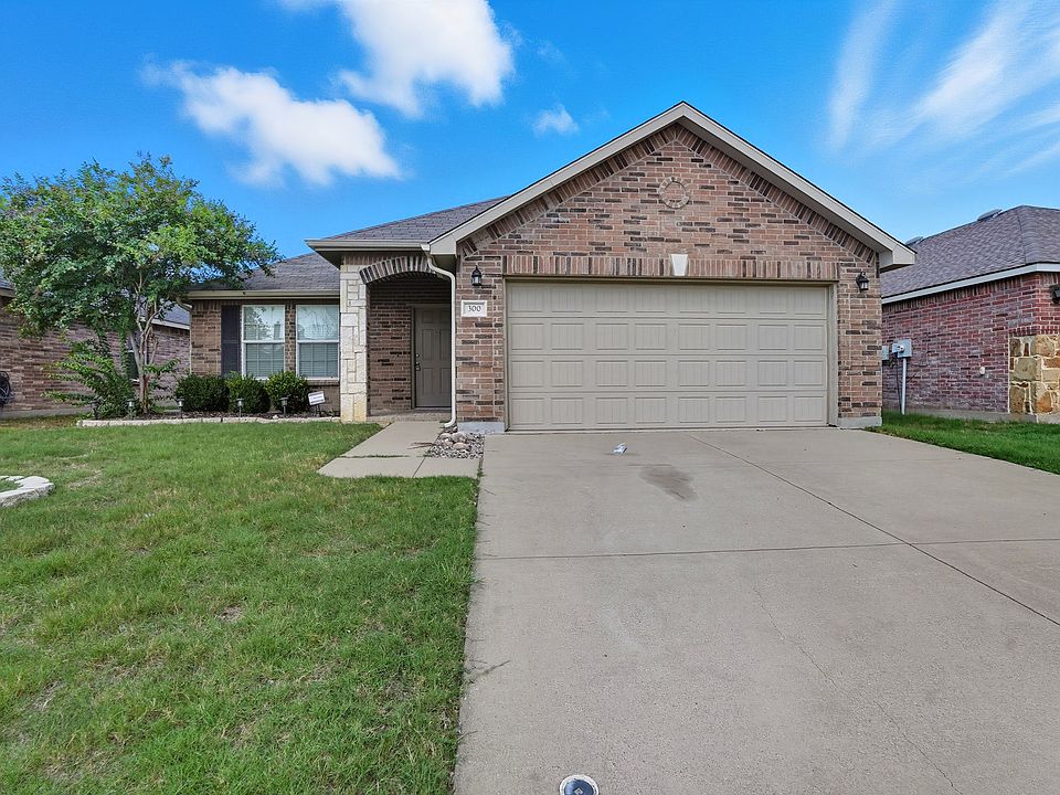 Adorable home has stone & brick elevation with a spacious open concept living on the inside! Features include an oversized master with a big walk-in closet, a separate shower, a garden tub and dual sinks, large secondary bedrooms, and ceiling fans in all bedrooms and living. 2-inch faux wood blinds throughout, hand scraped laminate flooring in living, dining, and hallway. Tile in wet areas, updated carpet with high-end pad, and updated paint. The eat-in kitchen features granite countertops, stainless appliances, and a large walk-in pantry. Zoned for Northwest ISD.
