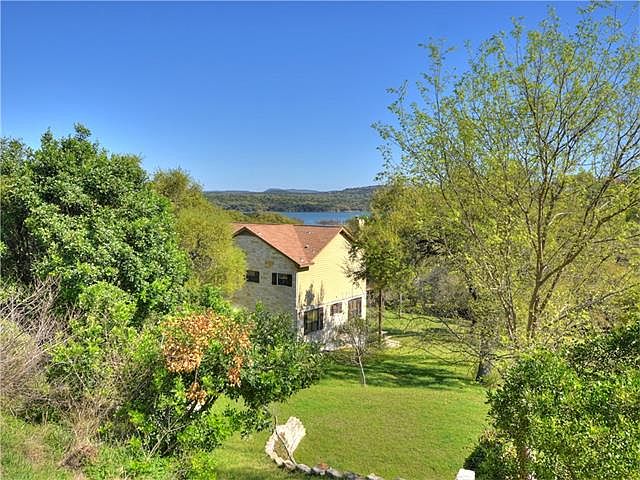 Live at Lake Travis! PANORAMIC views of the lake & hills; large, flat yard backs to greenbelt area. Wonderful finishes throughout - this pristine home SHINES! Main level is OPEN & showcases the views:: great room, kitchen (you will love this one!) & dining lead to covered deck spanning the back. Great spaces for entertaining. Master suite is on the main level + an office/4th bedroom. Secondary bedrooms, bath & bonus area down + lower level deck. Short walk to the Lake Travis shoreline & community Marina.