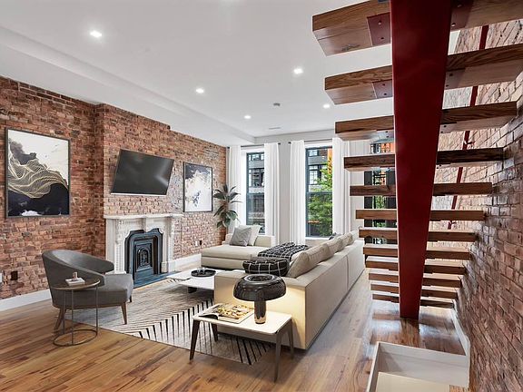 Welcome to 300 Herkimer. This Brownstone has been completely gut-renovated and redesigned for modern living. Boasting a 3 bed, 2.5 bath Duplex with shared backyard in beautiful Bedford Stuyvesant. Come make your Brooklyn townhouse dreams a reality with this brownstone beauty. The parlor floor's soaring high ceilings, abundant space, meticulously restored exposed brick, hardwood and natural light will inspire and delight. This level boasts an entire floor of living and kitchen space with easy access to the backyard from your new Chef's kitchen. No expense has been spared in the kitchen, complete with marble countertop island, top of the line stainless steel appliances, custom cabinets, dishwasher and microwave. The Duplex offers three additional bedrooms and two additional bathrooms, including a spacious primary suite, soaked in sunlight. Looking for more green space in your life? Prospect Park is an 11 minute drive. St. Andrews Playground is directly to the east, touting a basketball court, handball, a baseball field and a playground. Brower Park, just to the south with more greens pace to roam. St. Andrews offers multiple basketball courts, garden space with flowers to attract monarch butterflies, a playground and now also a fenced area for dogs. The Kingston-Throop and Nostrand Ave. subway stops are both super close, with Nostrand Ave providing express access to the LIRR trains, the Barclay's Center, Downtown Brooklyn and Manhattan. Email or text us today to setup your private tour of this tasteful blend of both old and brand new.