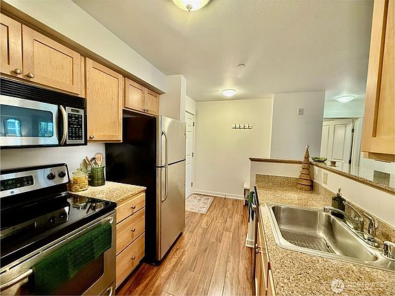 Great opportunity to own your own home in the heart of Bainbridge Island! This conveniently located one-bedroom condominium has been recently updated with fresh paint and all-new laminate flooring throughout. The building offers secure entry, dedicated secure garage parking, and elevator access. Other features include beautiful granite countertops, stainless-steel appliances, and a courtyard off the main living space. Located on a public transit route, 1.2 miles from the Bainbridge Island Ferry Terminal, and in very close proximity to restaurants, grocery stores, shops, schools, the public library, and more. A must-see - and located in a USDA home-loan-eligible area!