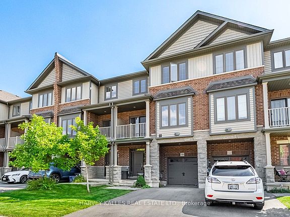 This stunning 2,151 sq.ft. townhome is located in one of Waterdowns most desirable family-friendly neighbourhoods.The main level features a spacious foyer that opens to a versatile room perfect as a bedroom, home office, or gym conveniently located next to a full 3-piece bath.Upstairs, the second floor boasts a bright, open-concept living space with 9 ft ceilings and luxury laminate flooring. The recently painted interior highlights a modern kitchen with all-white cabinetry, an oversized island with ample storage, brand new high-end stainless steel appliances, updated lighting, and a stylish 2-piece bath. Step out onto the private enclosed balcony ideal for morning coffee or evening wine.The third floor offers three generously sized bedrooms, a 4-piece bath, and the convenience of bedroom-level laundry. The primary suite includes a large walk-in closet and an ensuite bath, creating the perfect retreat.This move-in ready home combines comfort, style, and practicality in a prime location close to schools, parks, trails, and amenities.