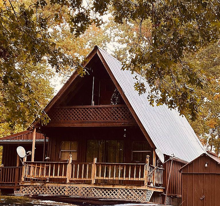 Cabin perfect for hunters. One acre of land borders Yatesville Lake on two sides with public hunting. View from porch and living room of lake. County maintained road ends at property line. Is secluded and private. City water, septic tank, central heat and air plus wood stove outside to help on heating bills. Property and house sold as is.