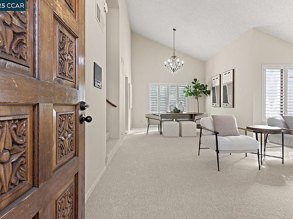 Welcome to this lovely corner-lot duet in charming Hidden Lakes neighborhood, situated just minutes away from Martinez's fabulous Hidden Lakes Park. At almost 1,600 square feet you'll find plenty of living space in this two-story home featuring three bedrooms and two-and-a-half baths. Vaulted ceilings in the Living Room and Dining Room greet you at the front door and make the home exceptionally light and bright, while a gas fireplace provides instant ambiance. The Kitchen and Family Room are in a large open space together with plenty of room for informal dining. All of the bedrooms are located upstairs for a desirable sense of privacy. In the Primary Bedroom Suite you'll appreciate the airiness provided by the high ceilings, a generous walk-in closet, and the convenience of a full-bath. Across the hall are two additional bedrooms, a guest bathroom, and built-in storage. The half-bath is conveniently located for guests downstairs off the Kitchen, along with a laundry room and interior access to the two-car garage. Enjoy outdoor living on the covered back deck in the fenced backyard or the vibrant lawn in the front yard. And the Lake Ridge Trail is just steps away for gentle hikes along the rolling hills and serene surrounding nature of the East Bay.