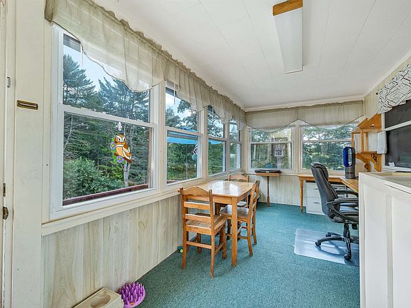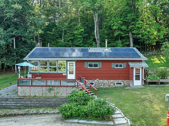 Plan on spending time when visiting this picturesque estate with pond and brook offering 3 acres of tranquility. Take driveway to the left to find an enchanting 2-bdr ranch. Enter from the deck to find the perfect space for dining or relaxing with cleverly built-in wood pellet storage. The galley style kitchen offers ample counter and cabinet space, with ingeniously created slide out drawers for efficiency and organization. The living area boasts comfort and relaxation with entry to a bedroom w/ door to the back patio area. Down the hall you will find a ¾ bath with plentiful and crafty storage space, the laundry area and primary bedroom which has direct access to the back deck via a slider. Step outside to explore the gorgeous landscape and many outbuildings beginning with 2-vehicle carport which leads to the insulated/heated workshop where you will appreciate the ability to work on your favorite projects year-round! Next check out the shed, with ramp perfect for storage for your yard maintenance tools. Walk around the pond or over the bridge to find a large carport for your RV, trailers, or additional vehicles. Next visit the large barn perfect for storing just about anything with access via separate gated driveway. All the privacy you desire, yet close proximity to the lakes, restaurants, shopping, skiing, snowmobiling, trails, hiking for 4 seasons of recreation and only 10 min to I93. Come explore this amazing property today!