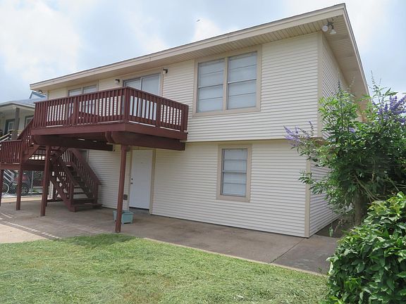 Lovely and spacious two-story canal home with large pier. Recently updated! Downstairs includes large living area with closet, full bath with cabinet space and walk-in shower. Interior stairs to second floor. Upstairs includes roomy kitchen, open concept living and dining areas, three bedrooms with closet space in each, full bath with cabinets and shower-tub, and washer dryer area. Upstairs patio access to exterior stairs. Yard is fenced. Two single car attached garages each with interior access to the first-floor space. Conveniently located off IH 45, Highway 6 for easy access to Galveston, Houston and surrounding areas.