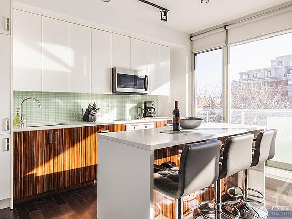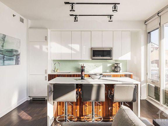This well-appointed 2-bedroom, 2-bath residence is located in an established & well-run condo building situated in the heart of Ottawa. Set on the 4th level, this larger end unit reveals a comfortable open-concept layout with a fresh minimalist style making the modern kitchen the focal point. The adjoining living area is well-appointed by a wall of floor to ceiling windows, flooding the home with warmth & natural light. Rounding out this charmer is a spacious primary suite, 2nd bedroom, full bath & laundry closet. Designed for comfortable living, the unit showcases 2 balconies, ideal for entertaining & relaxing. Indulge in the finest urban lifestyle within walking distance to the lively ByWard Market, Parliament Hill, China Town, downtown & kilometers of waterfront trails. Exceptionally well-run condo building with top-of-the-line amenities which include an outdoor pool, hot tub, gym, movie theatre, & party room. 2023-11-15
