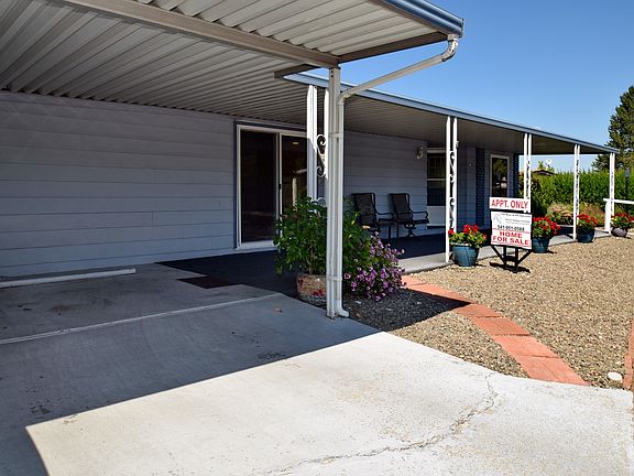 This spacious home is set in a 55+ community that offers lots of amenities and welcomes your 4-legged family member too. The home has 1,440 sq feet, 2 bedrooms 2 bathrooms, a very roomy utility room, a kitchen that's loaded with cabinet space and upgraded appliances. There is a triple door stainless refrigerator, glass top cooking surface, upgraded built in self-cleaning oven and dishwasher, disposal in a stainless steel sink with hot water on demand and built in soap dispenser. The washer/dryer set stay with the home in the separate utility room that has a folding counter and a huge linen storage for all those big winter comforters. There are wood laminate floors throughout, 3 ceiling fans with lights and both bathrooms have been upgraded. And the living room is nicely accented with a gas fireplace for those chilly winter evenings. Outside offers side by side covered parking, a very private large back patio with a charming water feature and a work shop with electricity for the handy person. Numerous other upgrades, improvements and conveniences but call to make an appointment to see this great home. We don't think it will be long before getting an offer.