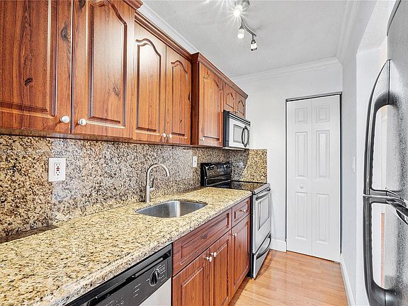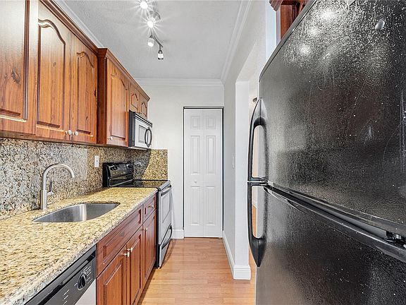 Secured gateGranite countertopsLaminate wood flooringBlack and stainless-steel appliancesAssigned parking space