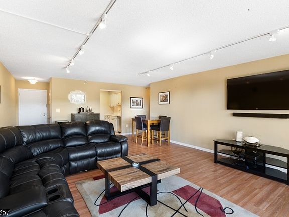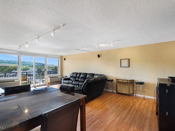 Perched on the seventh floor, this corner unit at The Mill showcases sweeping treetop and direct river views. The spacious living area is lined with large windows fitted with custom blinds and sliding doors that open to one of two private balconies, creating an ideal setting. Hardwood floors and track lighting enhance the open layout, while the dining space flows easily into the living room. The primary suite is generously sized with its own balcony, a custom walk-in closet, and a private renovated bathroom. The second bedroom provides flexibility for guests or a home office, with its own full bath nearby. Everyday convenience is elevated with a well-appointed kitchen, ample storage, custom blinds throughout and the benefit of in-unit laundry. Living at The Mill means enjoying a lifestyle rich in amenities, including a fitness center, pool, tennis courts, a walking path along the river, and on-site parking. With direct access to NYC transportation and Little Falls' restaurants, shops, and parks just moments away, this condo is a standout opportunity in one of northern New Jersey's most distinctive communities.