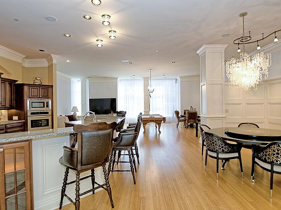 This one-of-a-kind downtown condo combines elegance, craftsmanship, and modern comfort with a view overlooking Main Street. Designed with exceptional attention to detail, it also offers thoughtful updates including new chandeliers, light fixtures, and fresh paint throughout. The inviting open floor plan, perfect for entertaining, features soaring 11-foot ceilings with expanded three-piece crown molding and golden bamboo flooring illuminated by natural light through UV-tinted windows. The gourmet kitchen showcases Caledonia granite countertops, professional-grade stainless steel appliances, a 36” gas cooktop with pot filler, double convection ovens, and a large island with seating for four. A secret door leads to the walk-in pantry, and rope lighting adds a warm, ambient touch. The primary suite includes a double tray ceiling, walk-in closet, and a luxurious bath with a Black Galaxy granite counter, a Moen spa shower in Travertine tile, and a jacuzzi garden tub. The second bedroom is also an en-suite, and has a large walk-in closet with pull-down stairs leading to generous attic space for extra storage, while the third bedroom—with its charming transom window—can easily serve as an office or library. Additional features include a dedicated utility room with a full-size washer and gas dryer, a hot water recirculating system, whole-house humidifier, a surge suppressor, and custom track-lighting systems to highlight artwork. Two reserved parking spaces and a secured storage unit are included in the underground garage. Residents can also enjoy the rooftop garden patio overlooking the downtown skyline—a perfect spot to relax, grill, or watch fireworks. The HOA covers maintenance, cleaning, security, trash, snow removal, and water and sewer services. All of this in the heart of a thriving downtown scene with restaurants, bars, entertainment, and the riverfront nearby.