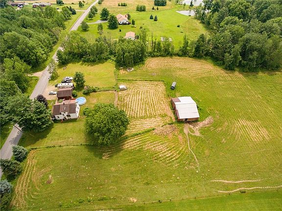 This impressive Homestead sits on a BIG 12.8 acre lot, with much more the meets the eye. The front porch, the large two car garage, and the huge yard has obvious curb appeal. But look a bit closer, and notice the well maintained charm of a classic 3 bed/1.5 bath home on the outskirts of town. Inside enjoy a comfortable clean layout, with large living room, formal dining room with French doors, and a big country kitchen. A nice breakfast nook over looks the pull thru style horse barn completed with four stalls, water hydrant, and hay mow. A convenient half bath and office that could be used as a 4th bedroom completing the first floor. Upstairs has 3 nice sized bedrooms with LARGE closets and a full bath with skylights. Back outside enjoy a private back deck and your 18ft pool! 3 acres of the property in the rear is wooded. Call today!