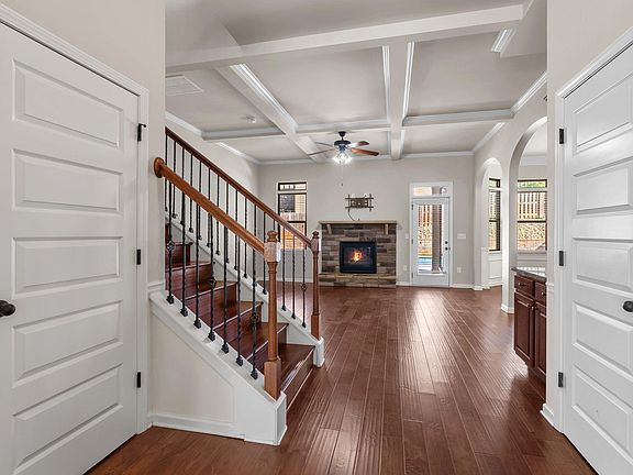 Stone fireplaceLoft with large closetsOpen floor planBuilt in wine barCoffered ceilings