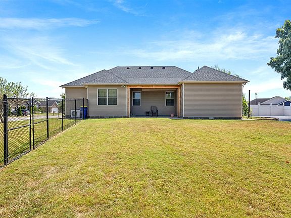 Comes with 1 year home warranty. Recently updated 3 bedroom and 2 full baths. Mini split in oversized garage and could be easily converted back to 4th bedroom. On one of the larger lots in Greystone (South Warren HS/Rich Pond Elementary School District). Granite counter tops, newly painted, updated fixtures, open floor plan with large living room. Master bedroom has double vanity and walk-in closet. Laundry room has additional pantry storage. Backdoor to house has covered porch with roll shade and large back yard completely fenced in with room to garden. Black fence has doble gate to allow for large mower, etc. Storage shed has space for all your tools and extra storage. New large concrete stamped patio is perfect for entertaining and relaxing. Newer roof, comes with keyless entry, security cameras and living room tv wall mount. Contact the listing agent today! 270-996-9257