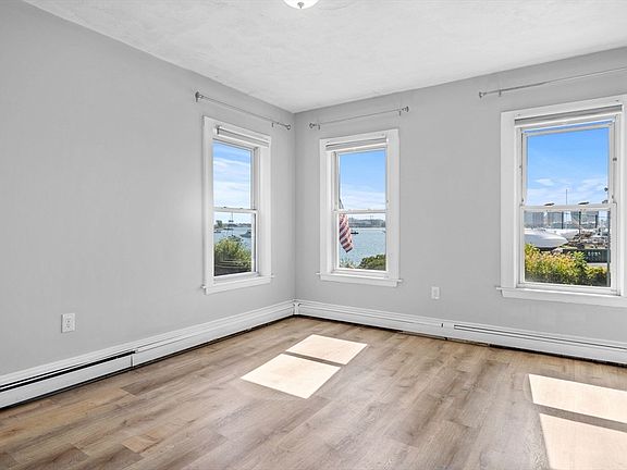Top floor 2 bed 1 bath in East Boston's coveted Jeffries Point! Sun-filled corner unit with a flexible layout & updated kitchen featuring stainless steel appliances, farmer's sink, peninsula, & ample storage, flowing into the living area for easy entertaining. Renovated bath with tiled shower, vanity, & built-ins. Primary bedroom includes a walk-in office/closet plus two additional closets. Private deck with close access to the Harborwalk, Piers Park, Marina water taxi, Reel House, Downeast Cider, & Maverick Sq Station. Unit will be freshly painted this week. Common laundry (new 2025). Pets negotiable. Rental application, verification of income & credit report required to apply. Move in deposits include 1st month's rent & security. No broker fee. Available NOW!