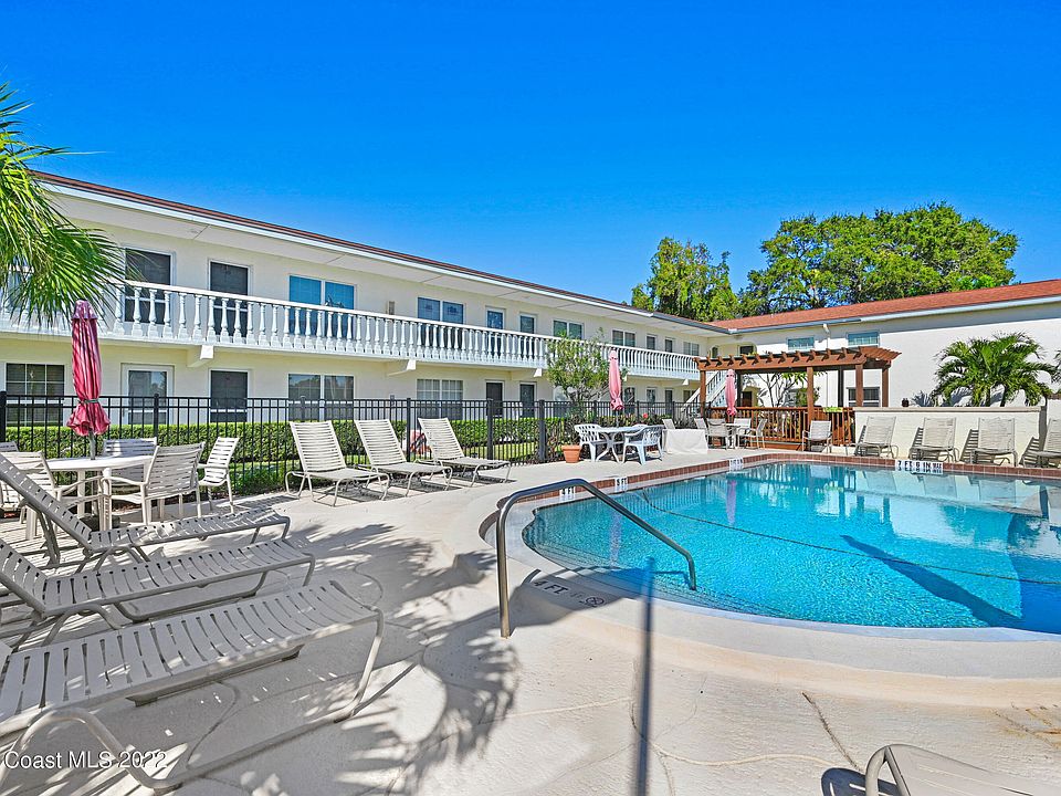 This one-bedroom beach town condo is located on the first floor of a very well-maintained pool side complex, with covered common grilling area, swimming pool and beautifully landscaped community making it a great long or seasonal residence. Only 3 blocks from the beach, less than two miles from Port Canaveral, and space, air force, and navy related employers. Why pay rent, when you can own this beach getaway even if you only spend your winters here. Complex is located across the street from Sandpiper Park, and in the middle of everything.  shopping, restaurants, attractions, the cocoa beach pier, it's all here!  Come see this Cape Canaveral Beachside Gem! is will not last long at this price.