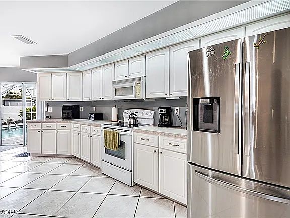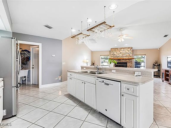 If you've ever dreamed of living on the water, this Gulf access home with Caloosahatchee River access is the perfect choice. This boater's/Fishermen's dream includes a captains walk dock/patio area to enjoy the SW Florida sunshine. Enjoy the pool with a large screen enclosure and an extended under truss lanai with pocket sliders. This 3-bedroom, 2-bathroom home sits on an oversized corner lot. This home also boasts of walk-in closets in all 3 bedrooms! Other features include tile throughout, a custom floor to ceiling stone fireplace in the main living area, an island with lots of counter space and cabinets for your storage needs, an extended indoor laundry room with utility sink and additional pantry area, a screened in front porch, a garden tub in the master bathroom and the backyard is fenced in.