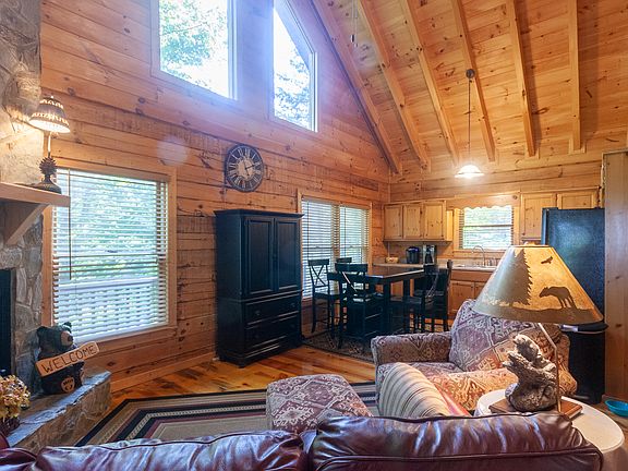 Dream of a mountain getaway with artistic long-range mountain views at an altitude high enough to feel like you can touch the stars? The beauty of the N GA mountains surrounds you in this inviting true log cabin. Walk to the Benton MacKaye trail access or follow a lesser known trail to a waterfall with a tradition of a chilled bottle of wine awaiting your arrival (be sure to leave one for the next hiker)! Enjoy mountain breezes in the summer; splendid fall colors; surprise dustings of winter snow; and the beauty of springtime blossoms. Convenient to both Blue Ridge & Ellijay.