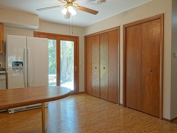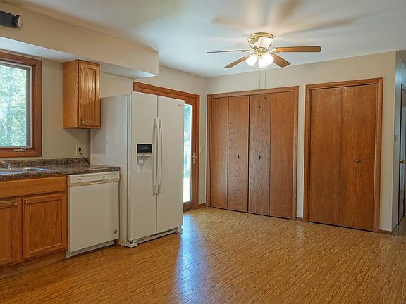 This spotless ranch home is move-in ready and sits on a beautiful, park-like lot that offers both privacy and room to relax. The main floor includes two spacious bedrooms, an inviting living room with large picture window, and a bright kitchen with updated cabinetry, countertops, and appliances?remodeled just three years ago. The dining area opens to the backyard through patio doors, extending your living space outdoors. Downstairs you?ll find a finished family room with a freestanding gas fireplace for cozy evenings, along with a third bedroom featuring an egress window. The lower level also offers a utility room with laundry hook-ups, while an additional laundry closet on the main level gives you flexible options. Practical updates and features set this home apart: hydronic heat provides steady, comfortable warmth without the dryness or dust of forced air, while central air conditioning ensures summer comfort. The home has durable vinyl flooring throughout?no carpet?and has been meticulously cared for with recent maintenance completed. Abundant closets and built-ins provide stor