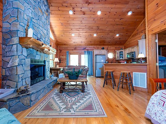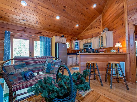 Escape to your own private woodland retreat! This stunning 1-bedroom, 1-bath cabin is perfectly nestled in the woods, offering unmatched seclusion while maintaining easy year-round access. Located just minutes from Fontana Lake and Tsali's renowned mountain biking trails, it's the ideal getaway for outdoor enthusiasts. Step inside to an open-concept living and kitchen area, highlighted by a beautiful stone fireplace with gas logs—perfect for cozy evenings. The spacious bedroom features an ensuite bath with tile shower, creating a serene sanctuary for restful nights. Outside, you have a huge deck for entertaining and enjoy the natural surroundings from the pavilion area below the cabin, perfect for outdoor gatherings or simply soaking in the tranquility of the forest. A small greenhouse adds a touch of charm, ideal for gardening hobbies or storing outdoor essentials. Small storage shed. Whether you seek a weekend escape or a peaceful full-time residence, this cabin offers the best of mountain living in a picturesque, wooded setting. Comes furnished.